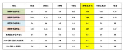 住宅性能等級_UA値一覧