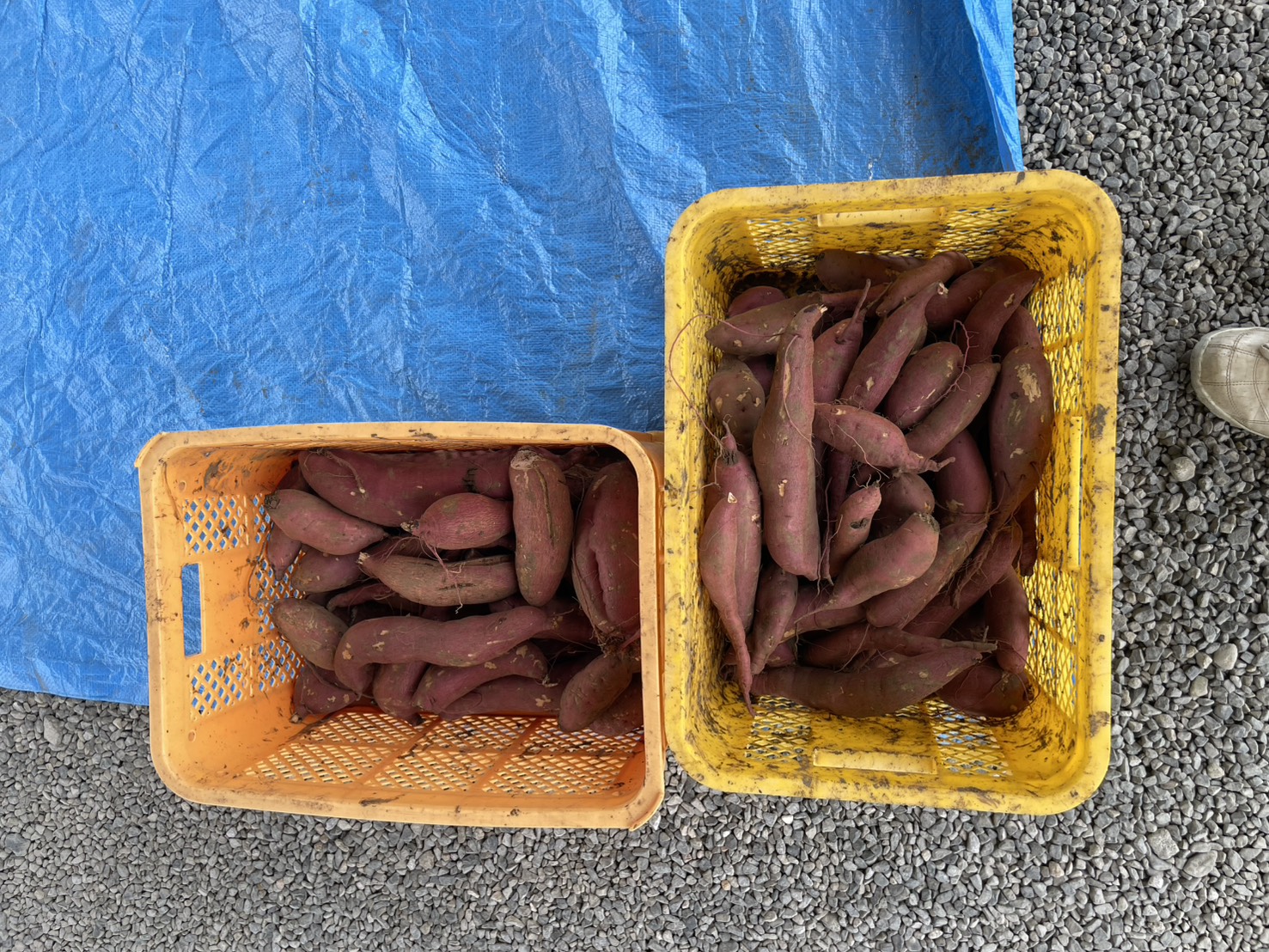 焼き芋を無料でご提供する分と掘らずに袋詰めする方用に一部さつまいもを掘ってみました。