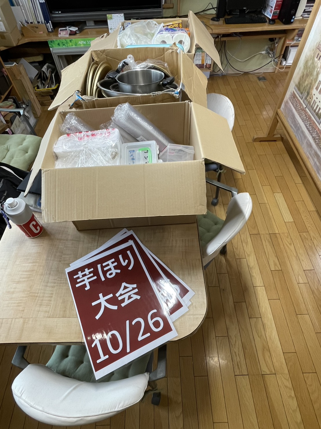 先週から本格的に準備に取り掛かりました。昨年の開催資料を基に準備物の確認と併せて在庫品を確認し、購入品のリストアップと買い出しを行っています。重くてかさ張る飲料品などは、ネット通販が便利で本当に助かりますね。