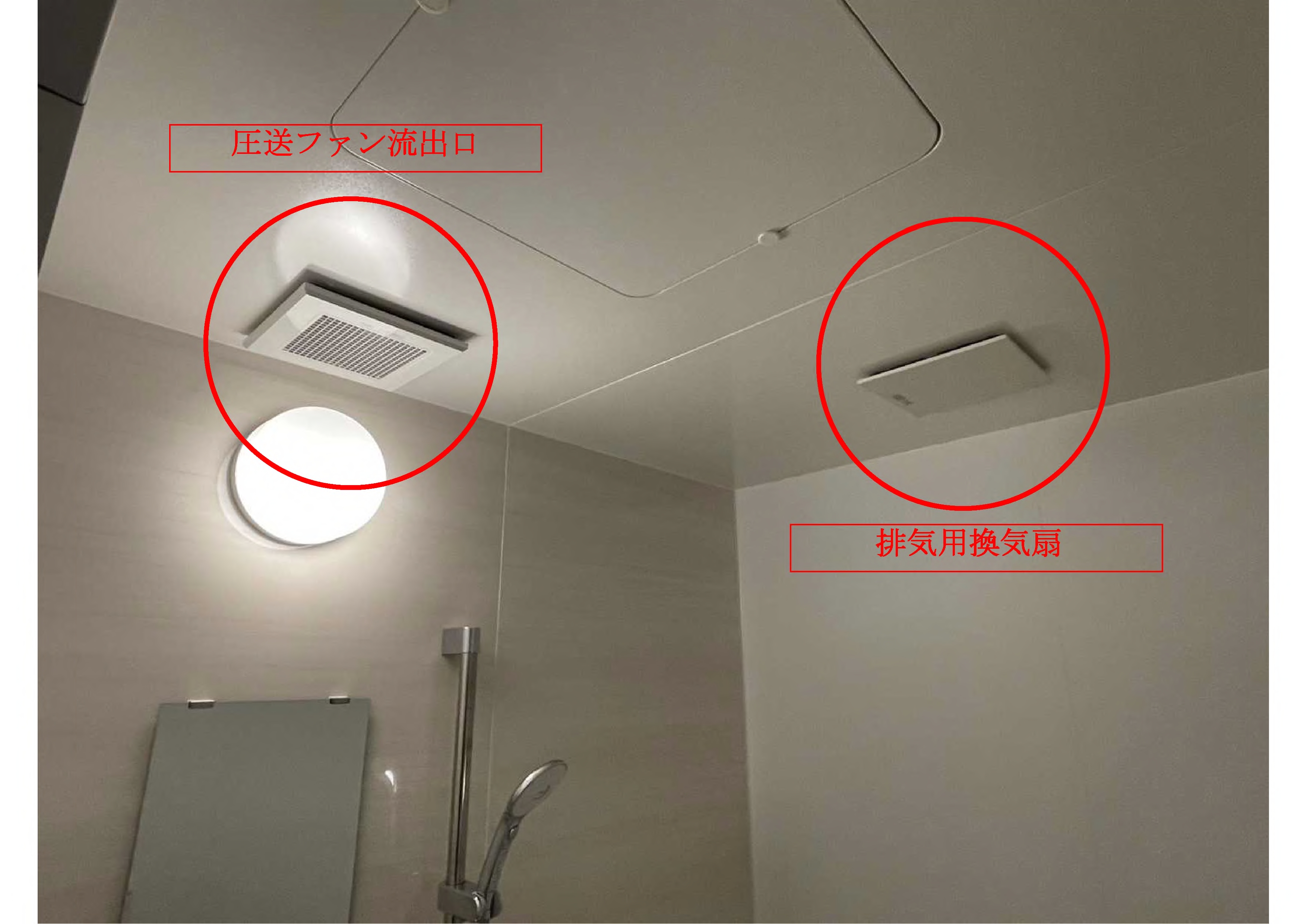 ①圧送ファン(送風ファン)の風量と取付位置が問題。