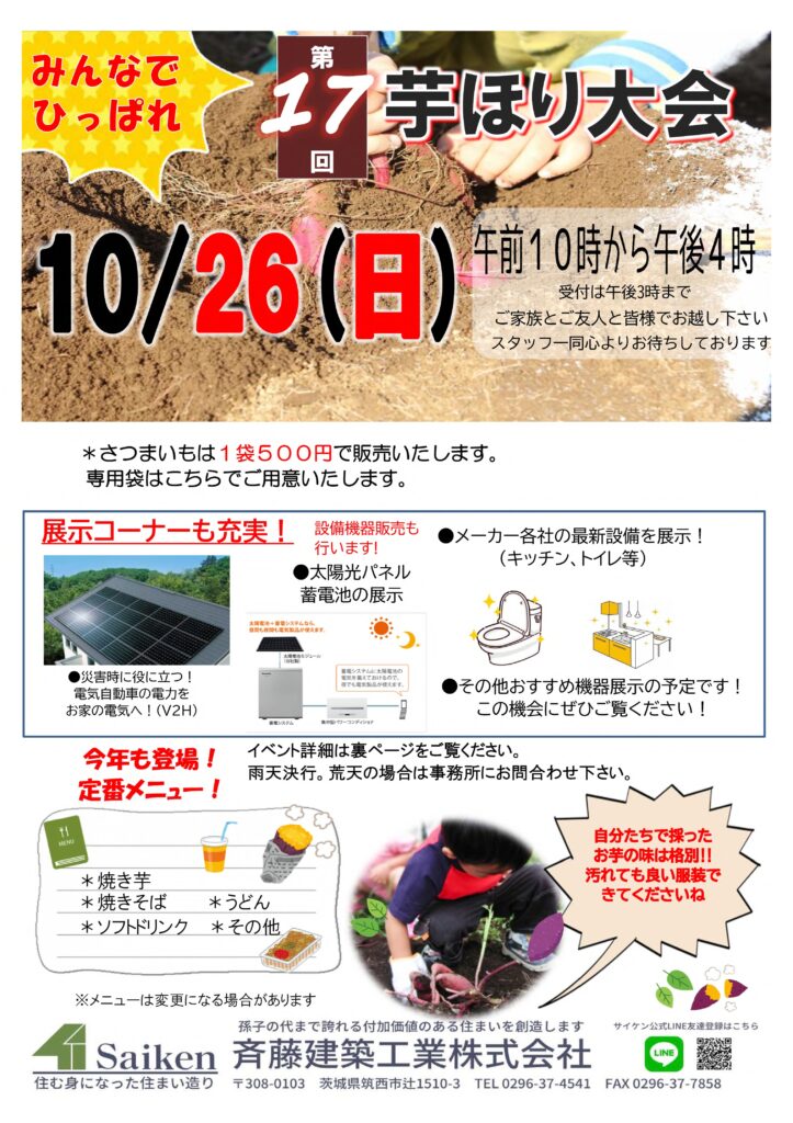 第17回 芋ほり大会のご案内 10月26日(日) 10時 開催 のご案内